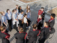 On November 2nd the CSMS Band was invited to attend the innaugural football game at Cumber Field - the new stadium at Marjorie Stoneman Douglas High School. This was a big event - with a healthy crowd and news helicopters in attendance. The CSMS Band was well prepared and was able to join in with the school fight song and several pieces of incidental music. Everyone had a great time (and Douglass came away with a win.) Thanks as always to our parent volunteers for feeding, chaperoning, and 'organizing' the students. Note: Some images are in black and white, and a few are in 'painting' format.