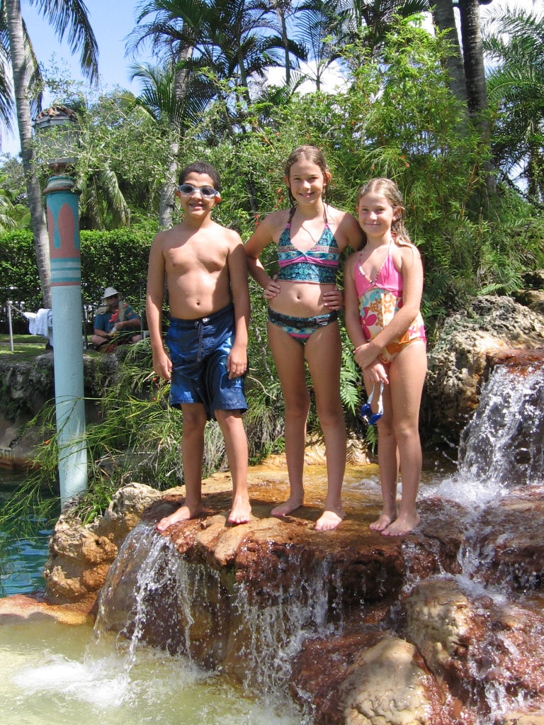 Click on any thumbnail image to view a larger image. The HOPI Tribe made its first ever visit to the historic Venetian Pool in Coral Gables on Saturday, for a day of swimming, splashing water-war-games and relaxing. Family and new friends came along to make for an excellent outing. The girls (and dads) had fun swimming through the grotto, jumping off the rocks, and going under the waterfall. We also had some very competitive swimming war games where even the littlest HOPI showed how well they can swim. The spring water was cool at first, but felt good in the hot sun. We also enjoyed the trees that surround the pool, providing cool shade and flowers. Participating were John, Rich, and Steve with their families, and new recruits Jay, Mike, Scott and Scott.