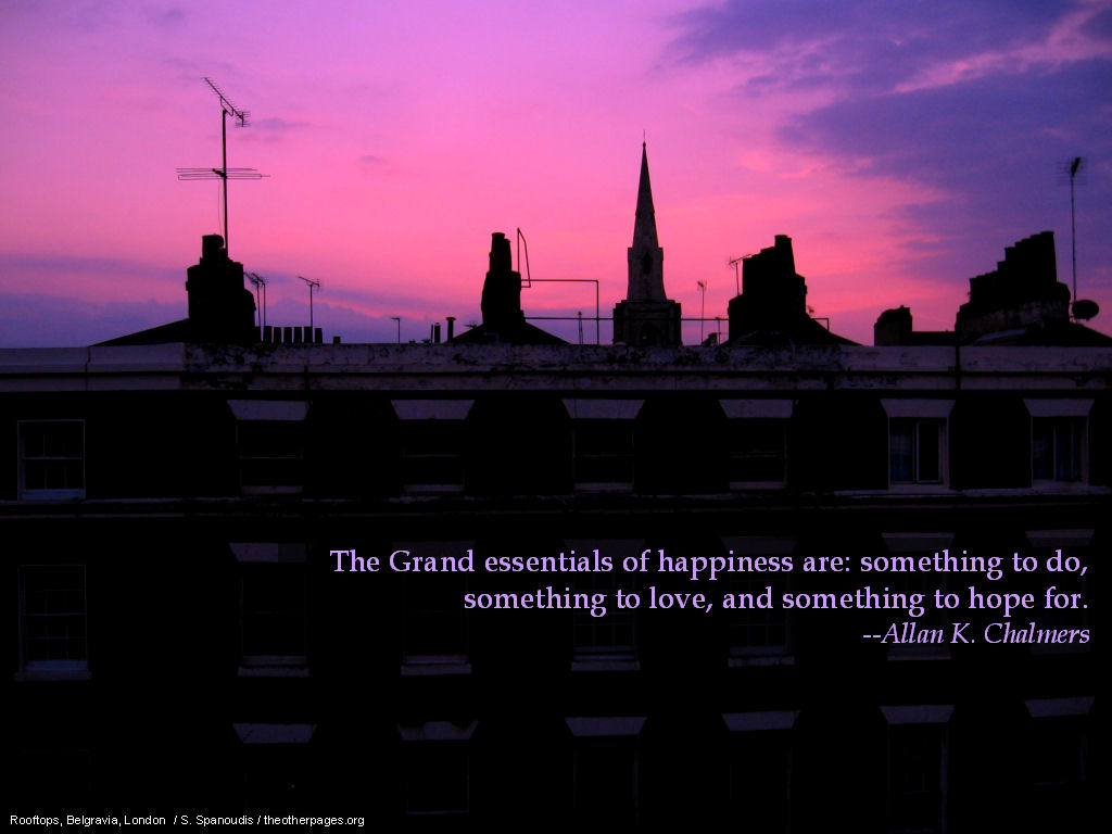 The Grand essentials of happiness are: something to do, something to love, and something to hope for.