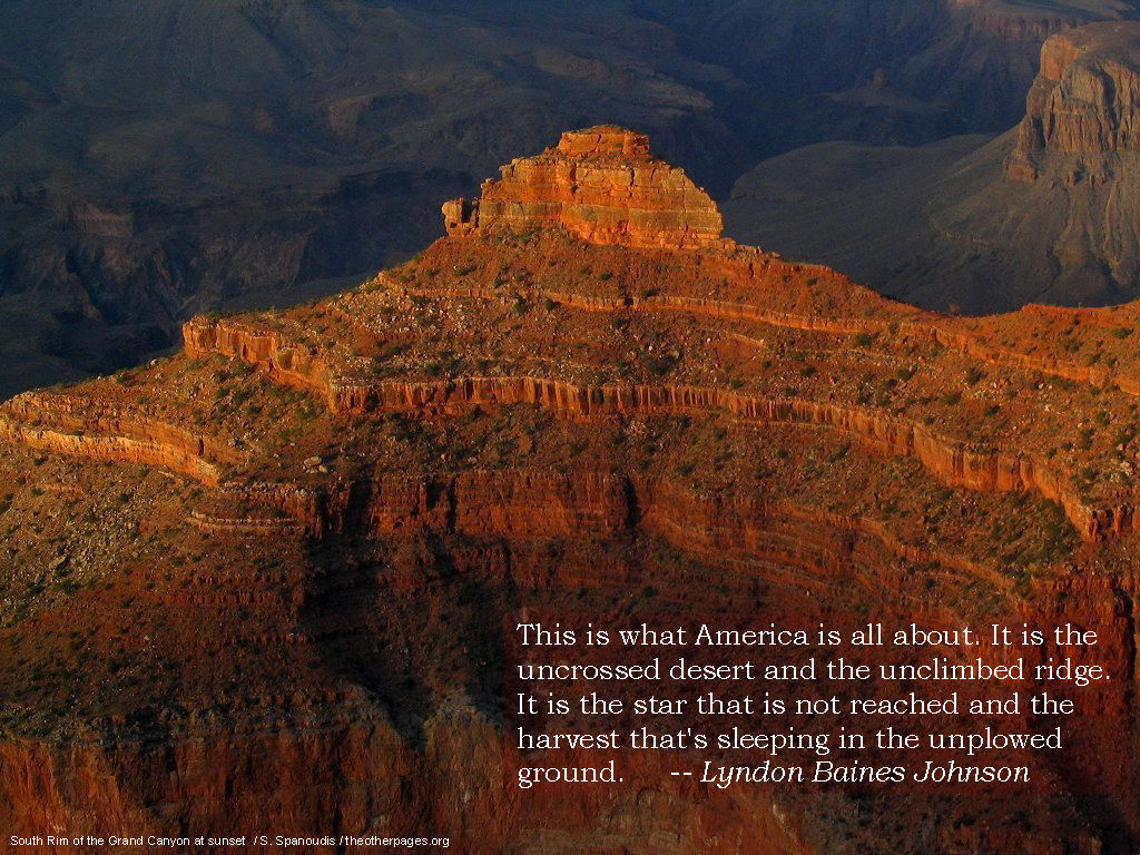 This is what America is all about. It is the uncrossed desert and the unclimbed ridge. It is the star that is not reached and the harvest that's sleeping in the unplowed ground.